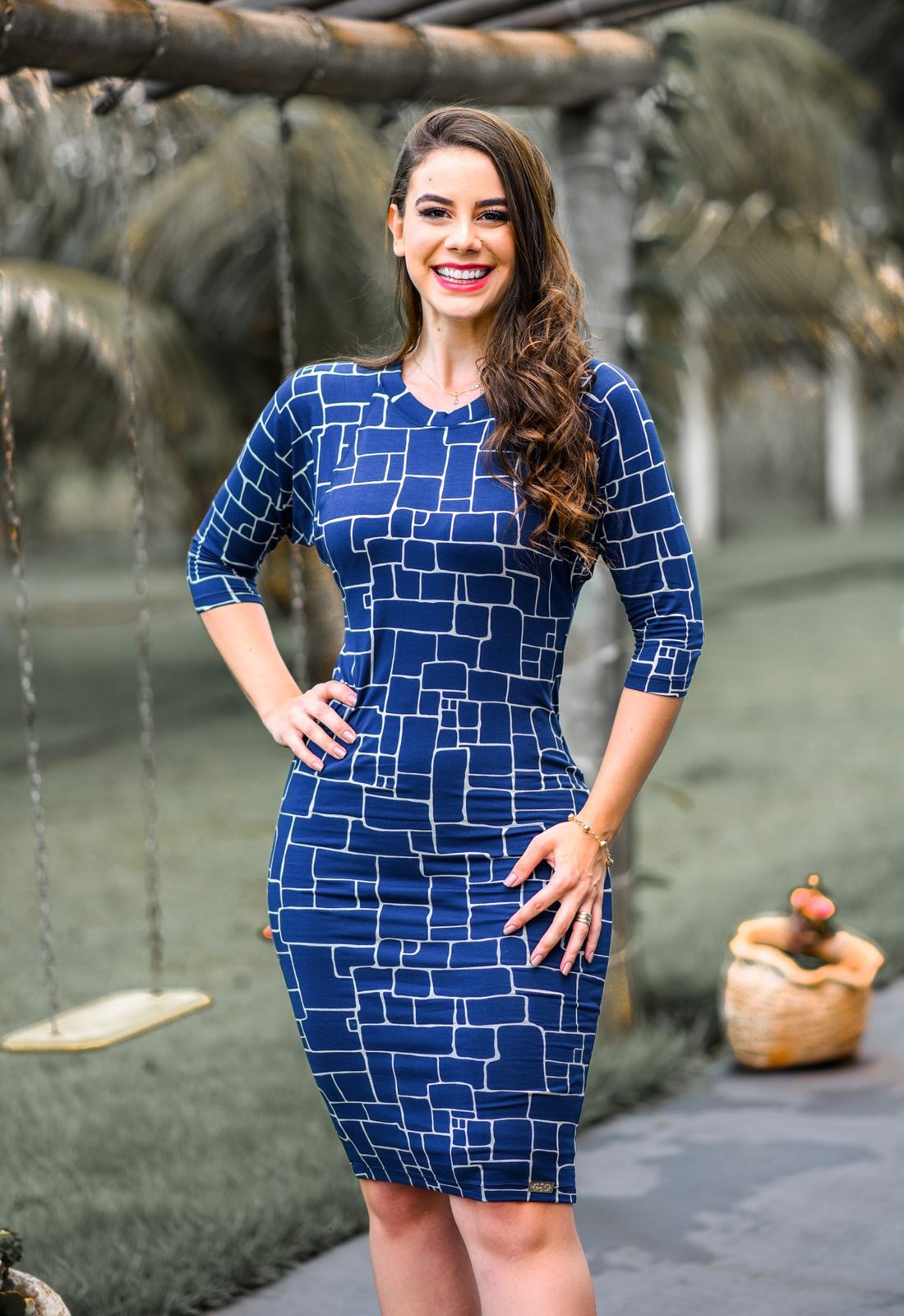 Cor: Azul marinho com nude